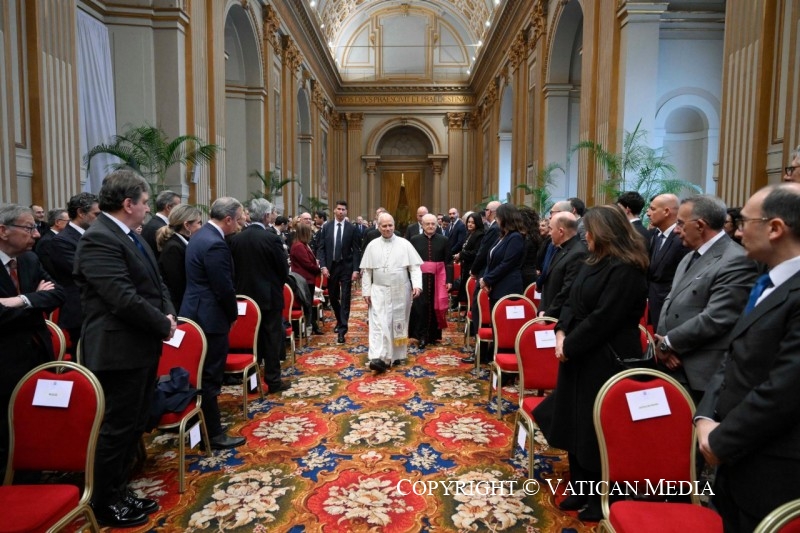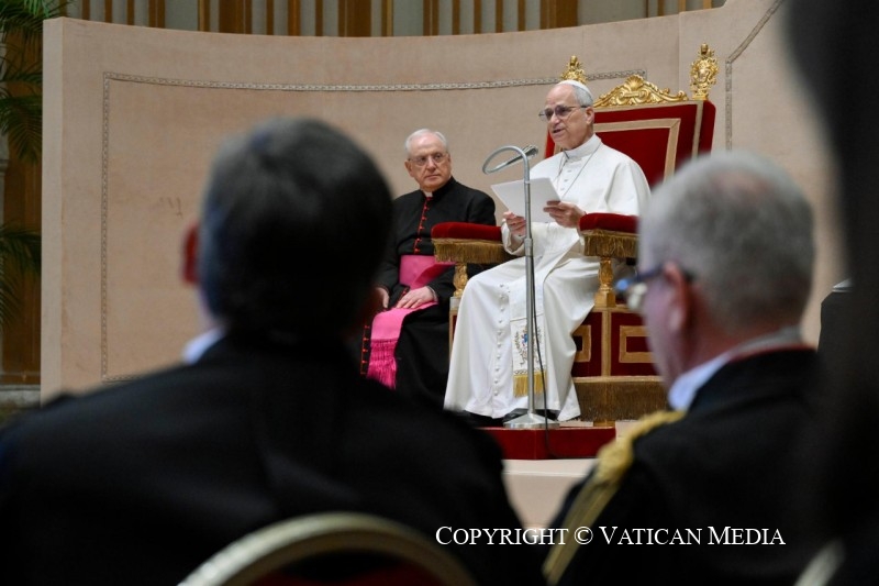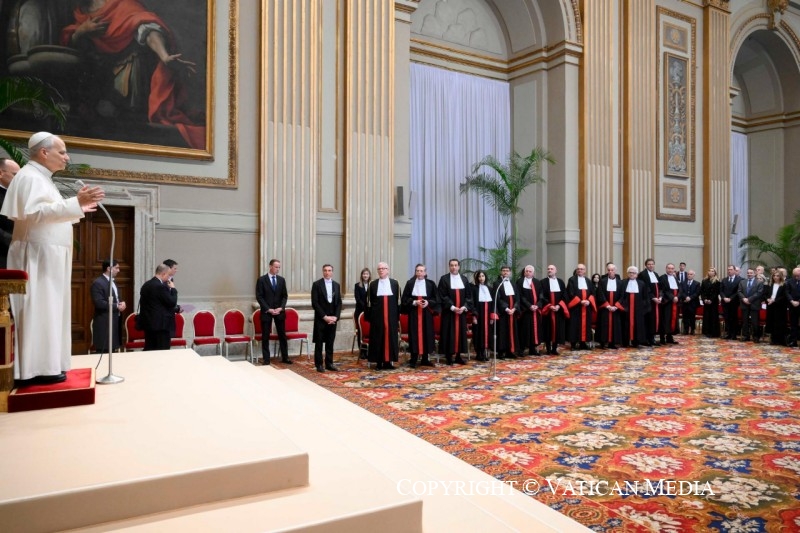 Logo no início do discurso, o Papa agradeceu o trabalho daqueles que exercem funções no sistema judicial do Estado do Vaticano. Segundo ele, o serviço prestado pelos magistrados e operadores do direito, frequentemente discreto e silencioso, contribui de modo decisivo para o correto funcionamento das instituições e para a credibilidade do ordenamento jurídico.